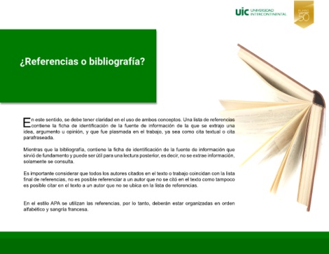 n este sentido, se debe tener claridad en el uso de ambos conceptos. Una lista de referencias