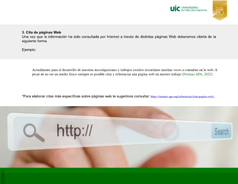 Una vez que la información ha sido consultada por Internet a través de distintas páginas Web deberemos citarla de la